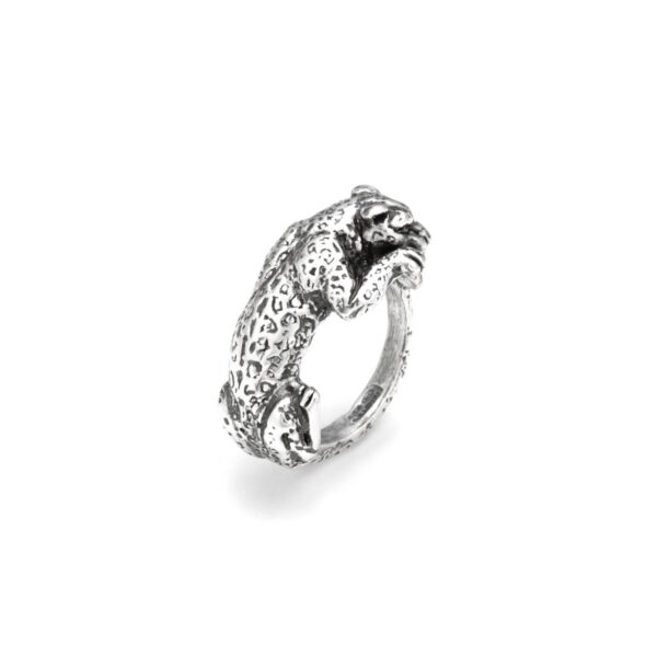 Questo anello si distingue per la sua straordinaria armonia, evocando tutto il fascino animalier del leopardo: Realizzato in argento brunito, con la tradizionale tecnica  della fusione a cera persa, si avvolge a cerchio intorno al dito fasciandolo con grande eleganza. Realizzato a mano in azienda