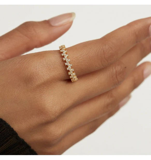 Anello da donna PdPaola collezione Essentials linea Crown ref. AN01-670-12 in argento 925‰ placcato oro 18 Kt con zirconi bianchi.