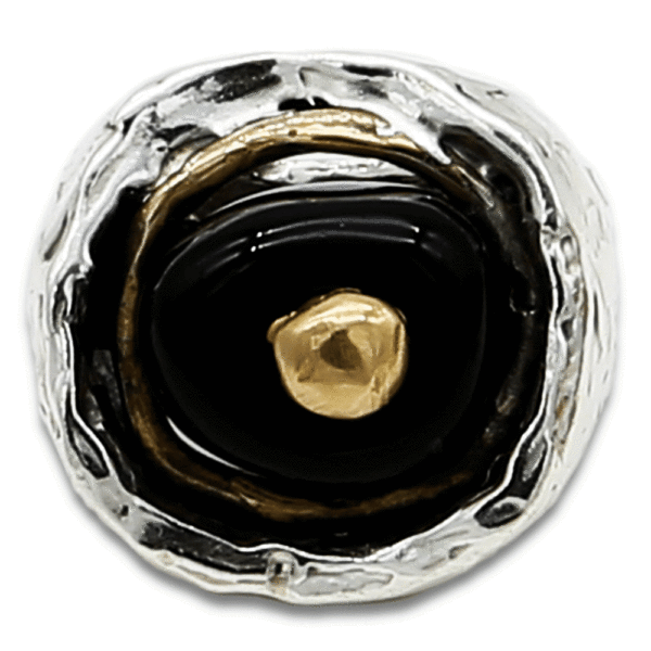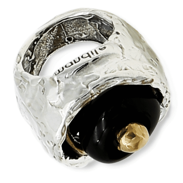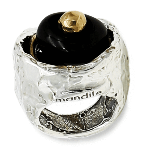 Anello in argento 925 inserto in bronzo , la piera graziosamente posta sulla sommità cconferisce movimento e dinamicità , per la donna moderna e contemporanea è un accessorio insostituibile per arricchire qualsiasi outfit con una nota di stile e colore.