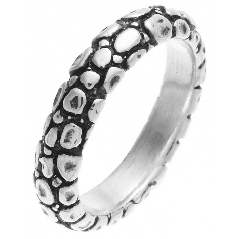 Questa piccola fascia bombata in argento brunito, mette in risalto il decoro animalier del coccodrillo. realizzato a mano in azienda