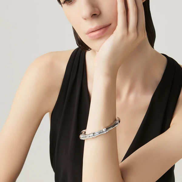 Collezione Bambù – L’eleganza senza tempo del bambù. Forza plastica dell’argento in una creazione leggerissima e piena di luce.