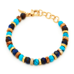 Argento 925 in bagno d’oro, turchese, agata blu con bronzite e pietra paesina