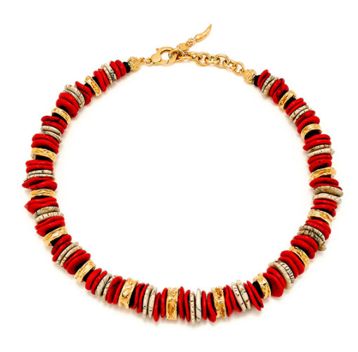 Collana in Argento 925 in bagno d’oro, madrepora e diaspro rosso.