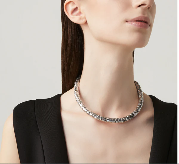 Collezione Crocodile. Texture luminose che si rincorrono tra i riflessi d’argento. Tutta l’emozione del gioiello animalier trasformata in una creazione contemporanea. Per raccontare la bellezza eterna della natura selvaggia.