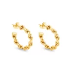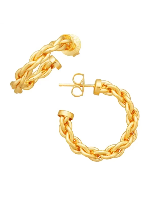Giovanni Raspini propone questi piccoli ed eleganti orecchini a cerchio in argento dorato, fuso a cera persa. La forma di questi orecchini si ispira ad una catena classica, ma con effetto rigido. Fatti a mano in azienda. Per una donna che ama la bellezza dell’unicità.