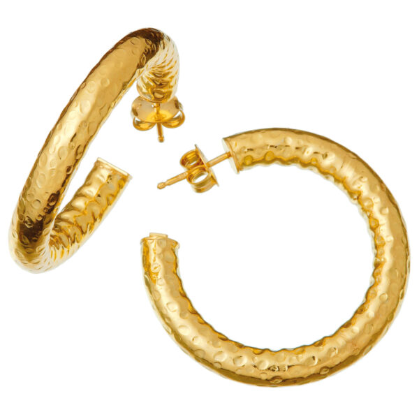 Contemporanei ed essenziali, questi eleganti orecchini portano tanta luce al volto. L’argento martellato a mano regala texture che solo Giovanni Raspini sa realizzare.