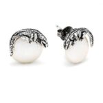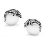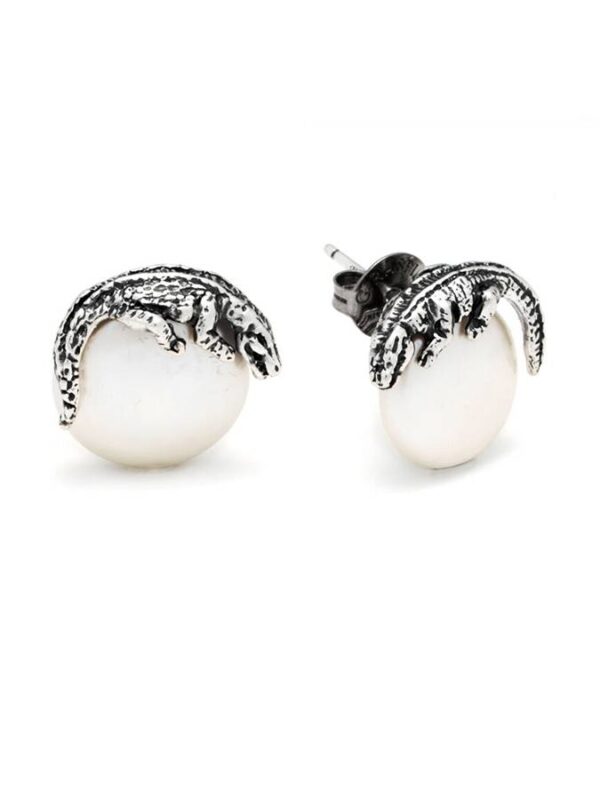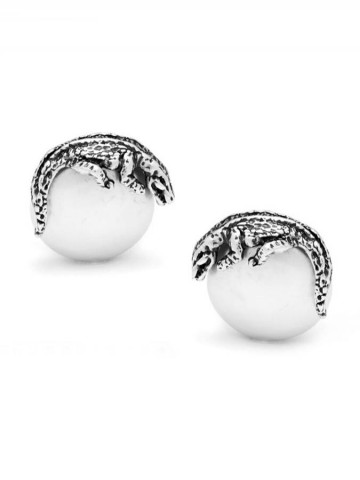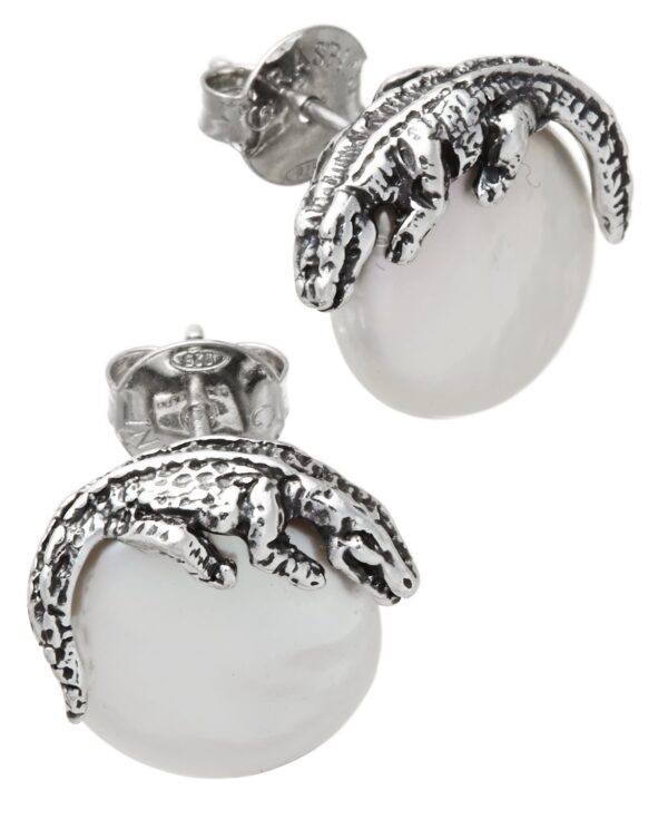 Questi orecchini sono delle vere sculture in miniatura, rappresentanti un coccodrillo che si adagia delicatamente su una perla. L’argento brunito mette in risalto lo stile animalier. Realizzato in azienda