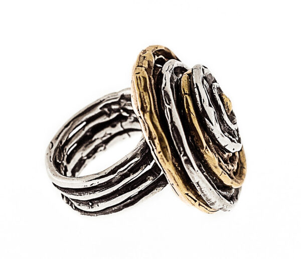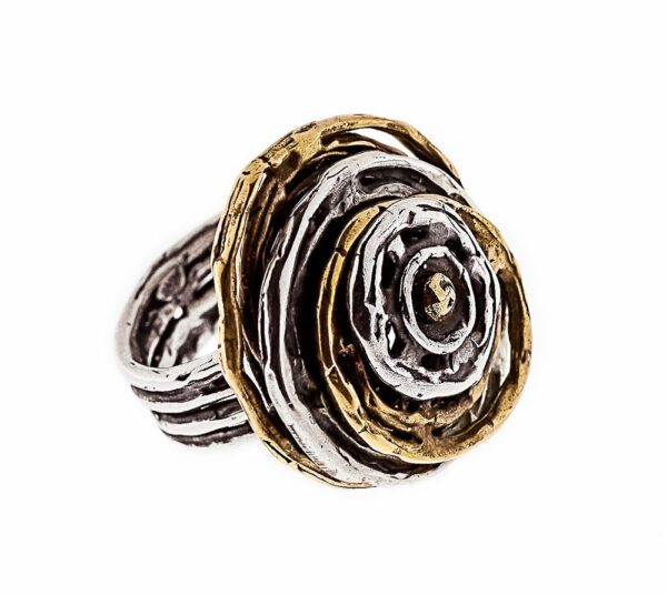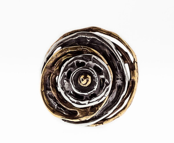 Anello in argento 925 e bronzo. Un vortice di cerchi concentrici per l’anello moderno ed elegante da indossare tutti i giorni .