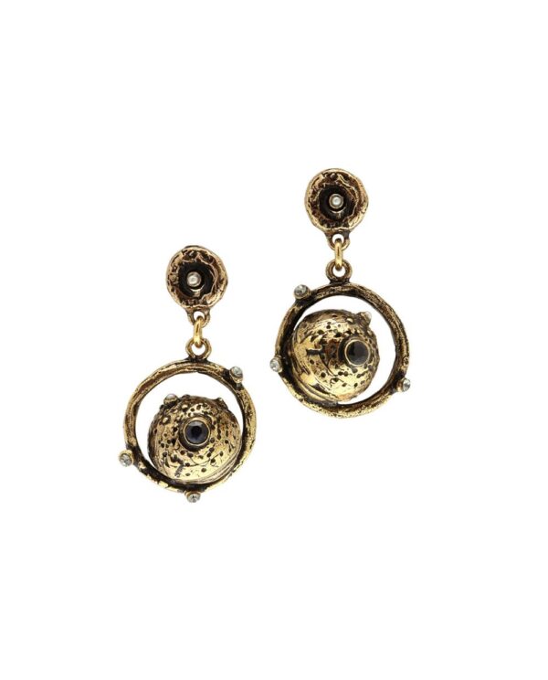 con sfere poggiate su cerchi in ottone dorato, swarovski, zaffiro e microperle