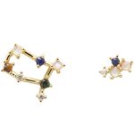 Set di 3 orecchini, Argento sterling 925 Finitura: placcatura in oro 18k Pietre: Zircone Dark Amethyst Zircone lavanda Base di madreperla e cristallo giallo Dimensioni pietre: 2,5 mm Tipo di chiusura: Vite tradizionale Diametro del cerchio: 10 mm Peso: 2,85 g La tonalità delle pietre semipreziose potrebbe variare leggermente a causa della loro origine naturale.