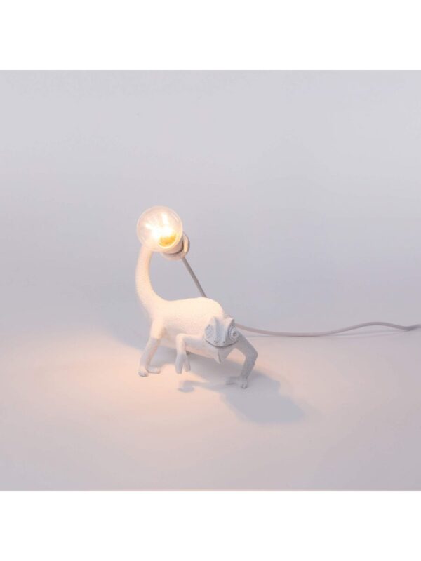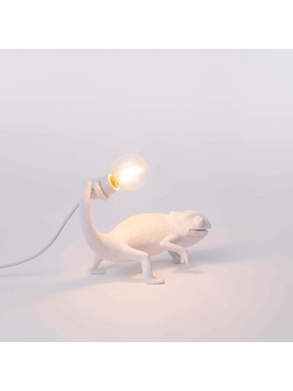Tre camaleonti bianchi, disinvolti ed estroversi, sono la decorazione perfetta per case mimetiche e spavalde che non temono sguardi indiscreti.