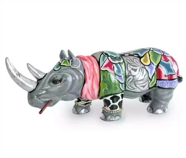 Un pezzo artistico: metti in risalto i tuoi interni con il Toms Drag Rhinoceros Fernando S Questa splendida scultura artigianale, parte della collezione Silver Line, mette in mostra l’arte distintiva di Tom’s Drag con intricati motivi dipinti a mano, dettagli argentati e un sorprendente corno argentato. Vero simbolo di forza e resilienza, questa scultura di rinoceronte è un must per gli amanti dell’arte e i collezionisti di arredi contemporanei unici.